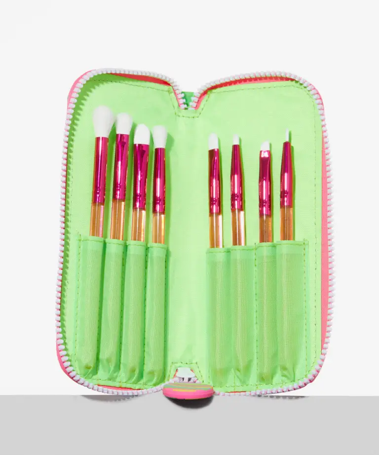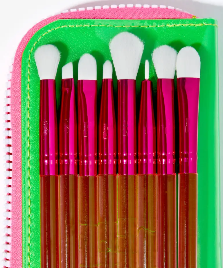 Набор кистей TECHNIDAZE от By BEAUTY BAY. В наборе собраны кисти для макияжа глаз, идеально подходит для создания всех ваших образов в стиле фестиваля техно. Каждая кисть с ярким веселым дизайном, с супермягкой синтетической щетиной, имитирующей натуральный волос, поможет вам добиться безупречного результата. Все кисти помещены в подходящий для лета неоново-зеленый мягкий мешочек на молнии.