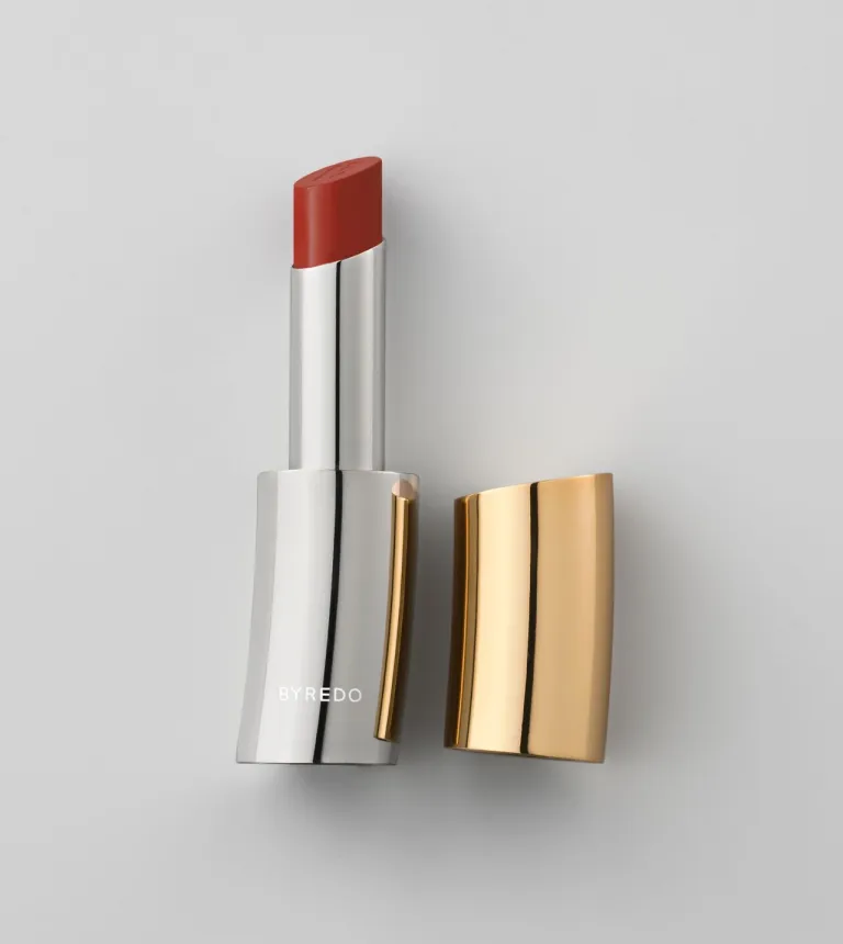 В своем серебристо-золотистом металлическом корпусе двухцветной криволинейной формы помада Byredo перекликается с бамбуком. Внутри находится точный тонкий стик, защищенный магнитным щелчком.