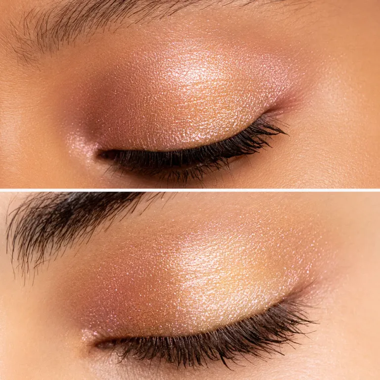 Роскошные тени для век с шиммером, придающие глазам сияющий объем. Эти сияющие дуотоновые тени выглядят как два переливающихся оттенка в одном.