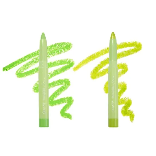 Получите яркий цитрусовый цвет с суперкремовыми, многозадачными оттенками в стике, которые наносятся без усилий: Bright Lights - яркий металлический лайм и Bussin - матовый электрический лайм!