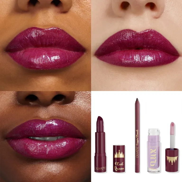 Создайте роковой образ с помощью этого трио из карандаша Lippie, помады Lux Lipstick и блеска Lux Lip Gloss, вдохновленного Злой королевой!