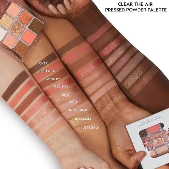 В палетке прессованной пудры Xtra Celestial Clear The Air от ColourPop представлены небесные оттенки мягкого персика, яркого коралла и мерцающей меди в металлическом, матовом, матовом сверкающем, атласном жемчужном и прозрачном сверкающем исполнении.