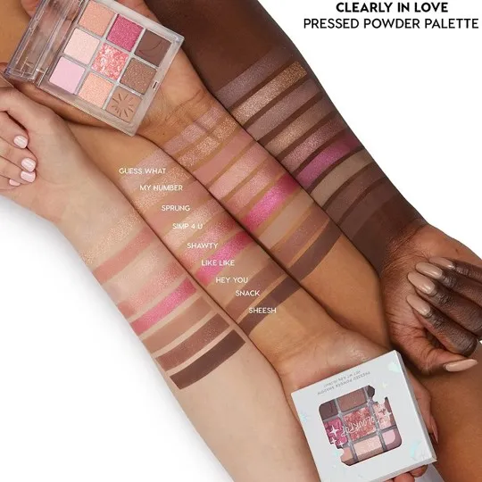 В палетке прессованной пудры Xtra Celestial Clearly In Love от ColourPop представлены сказочные оттенки нежного румянца, пурпурного, розового и балетно-розового цветов с металлическим, матовым, матовым блеском, атласным перламутром и прозрачным блеском.