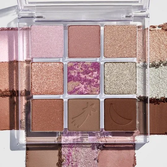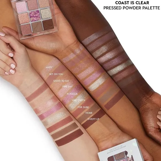 В палетке прессованной пудры Xtra Celestial CoastIs Clear от ColourPop идеально сочетаются холодные тона сиреневого, яркого фиолетового, розового и норкового цветов с металлическим, матовым, матовым сверкающим, атласным жемчужным и прозрачным сверкающим финишем.
