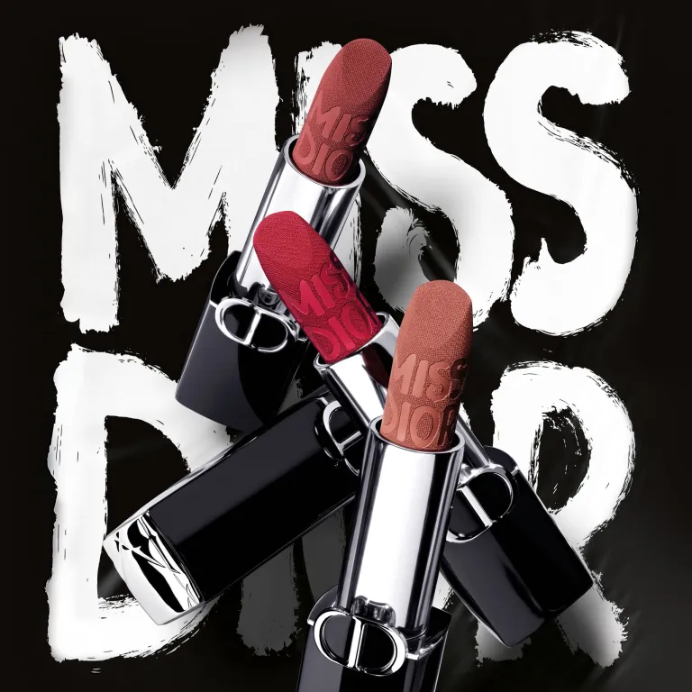 Rouge Dior украшена мотивом MISS DIOR, символом свободы, воплощающим смелый дух и поп-энергию женщины Dior. Она представлена в трех оттенках с бархатистым финишем: 781 Shocking Pink, 100 Nude Look и 720 Icone.