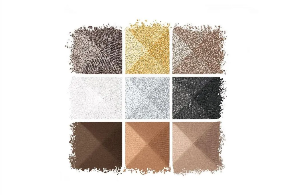 - Оттенки: Mauve Beige (металлический), Gold Light (перламутровый), Nude Beige (сатиновый), Twilight Pearl (перламутровый), Crystal Glaze (металлический), Starry Night (сатиновый), Soft Brown (сатиновый), Camel Brown (матовый), Taupe Beige (матовый)