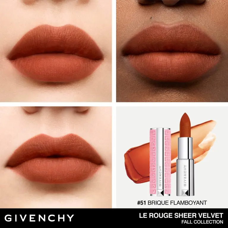 Le Rouge Sheer Velvet воплощает в себе непревзойденную современность и элегантность Дома Givenchy. Прозрачный матовый финиш, придающий губам длительный эффект размытости, покрытие можно растушевать по желанию, для комфортного ношения на губах.
