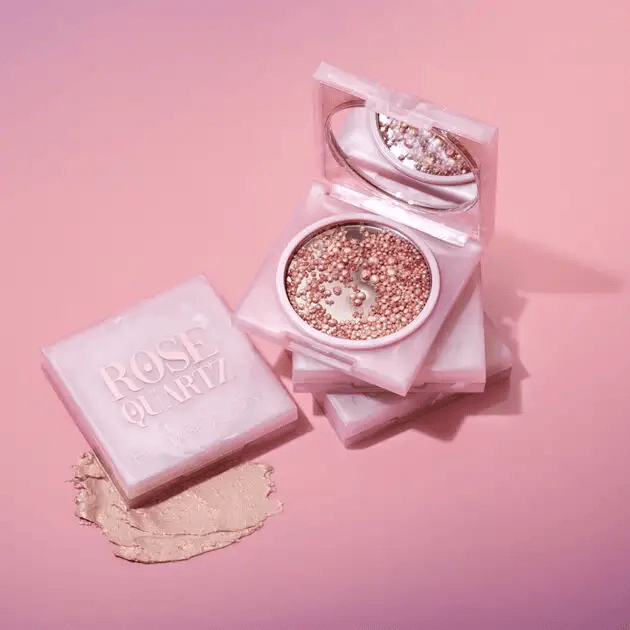Вдохновленный кристаллом розового кварца, данный блеск естественным образом подчеркнет ваши черты лица с помощью прозрачной, мерцающей формулы, наполненной теплыми розовыми и золотыми жемчужными каплями цвета шампань, которые прекрасно смотрятся на коже любого оттенка.