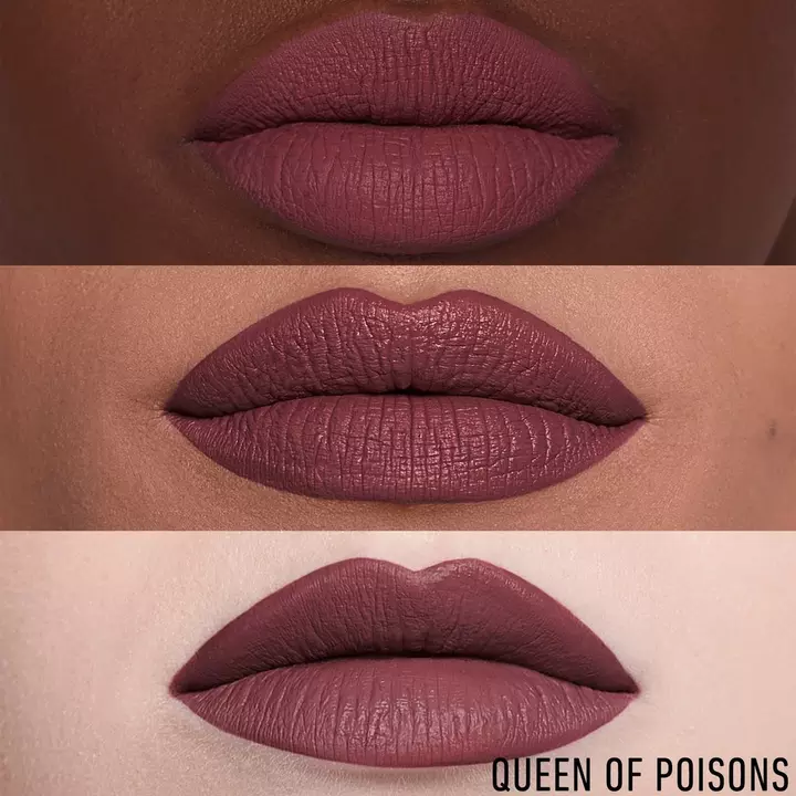 Полноразмерный набор из жидкой помады и подводки для губ, обеспечивающий легкий комфорт и длительную стойкость. Этот лимитированный дуэт, украшенный сюрреалистическими работами Росио Монтойи, включает в себя бестселлер бренда - каштаново-розовый оттенок Queen of Poisons.