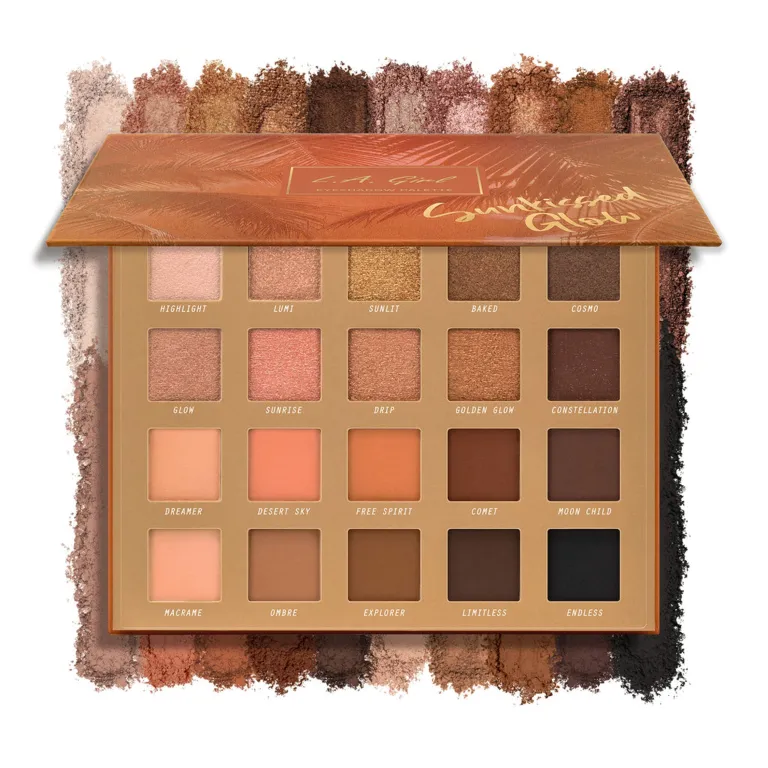 В палетке L.A. Girl Sunkissed Glow Palette 20 теплых бронзовых, медных и золотистых оттенков для сияния глаз. Идеальный баланс пигментированных шиммеров и бархатистых матовых оттенков, от переходов до глубоких теней и всего, что между ними.