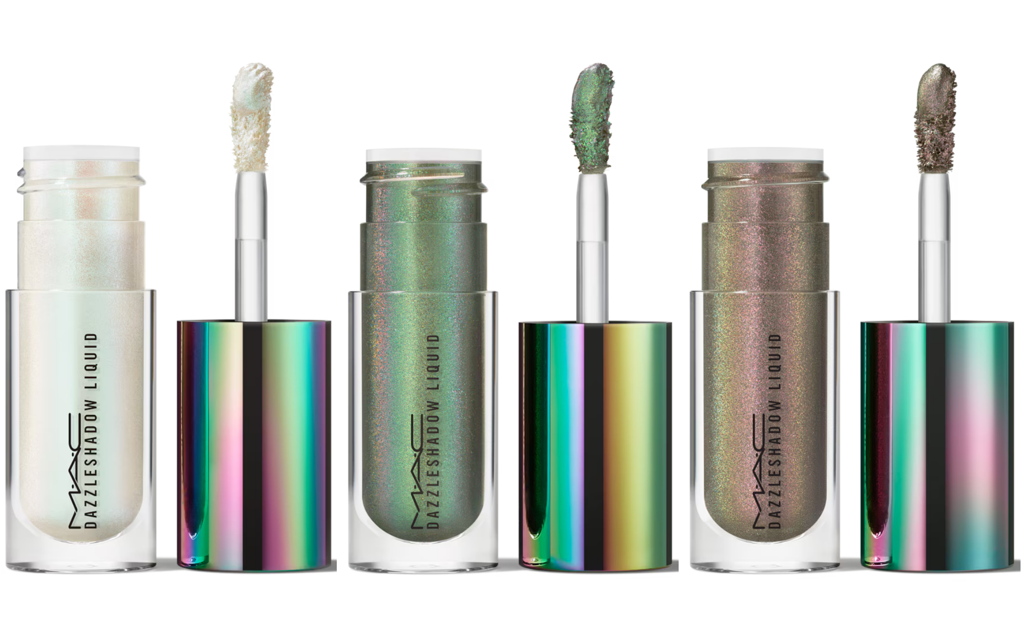 Представляем три лимитированных голографических цвета. Dazzleshadow Liquid - это ультра-блестящие жидкие тени для век, которые скользят по векам, создавая яркий цвет, сохраняющий свое великолепие до восьми часов.