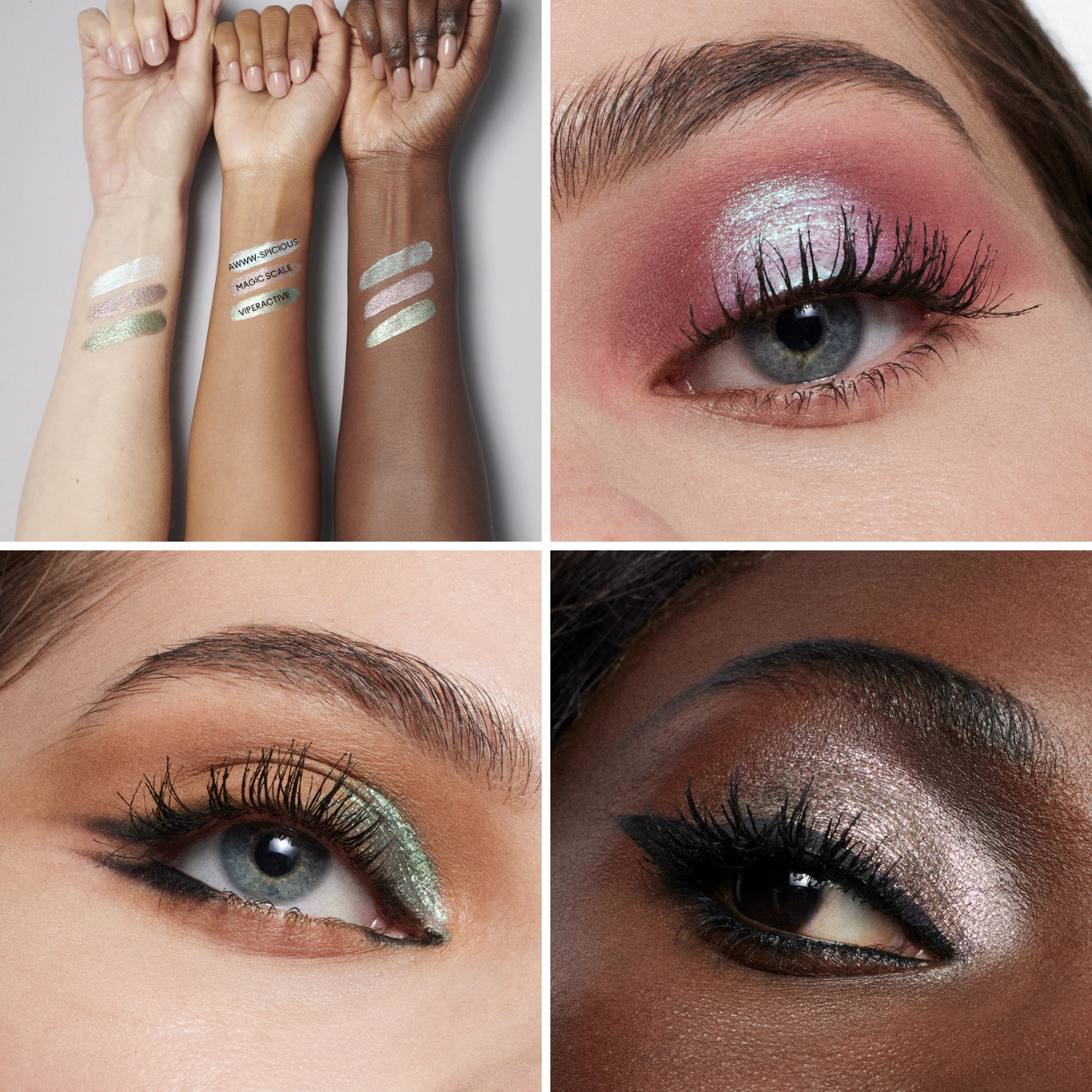 - Оттенки: Awww-spicious - белый/синий перламутр, Magic Scale - фиолетовый/зеленый перламутр, Viperactive - зеленый/серый