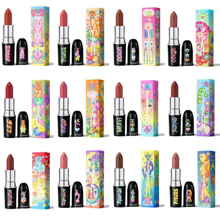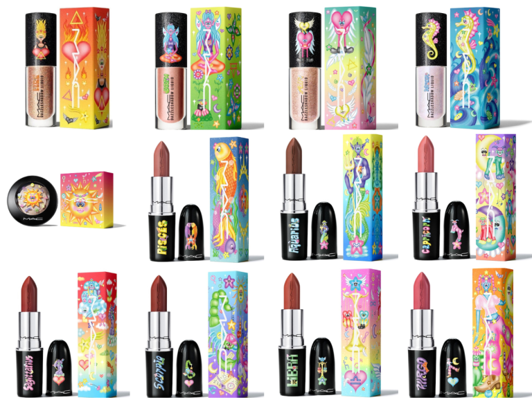 MAC недавно представила коллекцию Astro Shine сезона осень-зима 2023 года. В эту лимитированную серию вошли средства для макияжа в астрологическом стиле, включая губную помаду Lustreglass, жидкие тени DazzleShadow и пудру для лица Skinfinish.