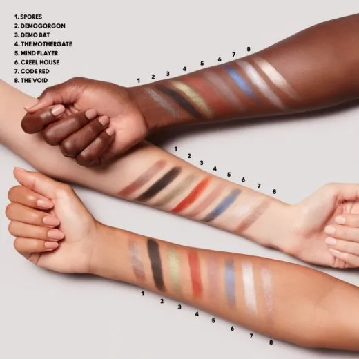 Погрузитесь в перевернутый мир с этой палеткой для глаз, вдохновением для которой послужил собственный дом Истребителя разума. Она содержит смесь теней Dazzleshadow Extreme и Powder Kiss Soft Matte Eye Shadows в восьми взрывных оттенках, чтобы вы могли преобразить свой взгляд так, как вам хочется. Насыщенные цвета представлены в лимитированной упаковке, вдохновленной перевернутым миром из сериала Stranger Things от Netflix.