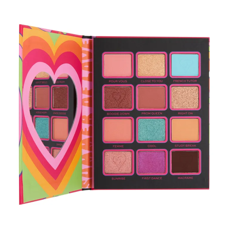Эта палетка, состоящая из 12 оттенков теплых нейтральных тонов с некоторыми голубыми и розовыми вкраплениями, идеально подходит на каждый день. Она включает в себя названия оттенков, вдохновленные Лизой Симпсон: FIRST DANCE - теплый розовый шиммер, FRENCH TUTOR - пастельный голубой матовый и SUNRISE - светлый бронзовый шиммер. Лиза изображена на лицевой стороне упаковки, а некоторые оттенки украшены сердечками, что соответствует зеркалу внутри упаковки. Окунитесь в эту палетку с набором кистей The Simpsons Revolution "Summer of Love" для идеального сочетания цветов.