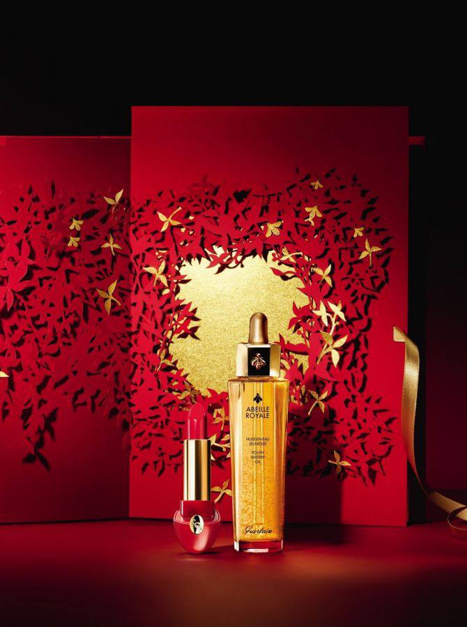 Каждый год бренды выпускают лимитированные издания, коллекции или наборы, чтобы отпраздновать китайский Новый год. В этом году Guerlain сочетал великолепную помаду Rouge G с водным маслом Abeille Royale. Эти два продукта поставляются в красной привлекательной упаковке с уникальными золотыми украшениями. Мы думаем, что вы уже знаете о Guerlain Abeille Royale Youth Watery Oil. Эта революционная формула сочетает в себе мощь сыворотки, богатство масла и свежесть лосьона. Кожа выглядит мгновенно гладкой. Кожа чувствует себя невероятно шелковистой и мягкой на ощупь.Новая губная помада Guerlain Rouge G представлена в красном, огненном оттенке. Красная и золотая упаковка - это выпуск с ограниченным тиражом.
