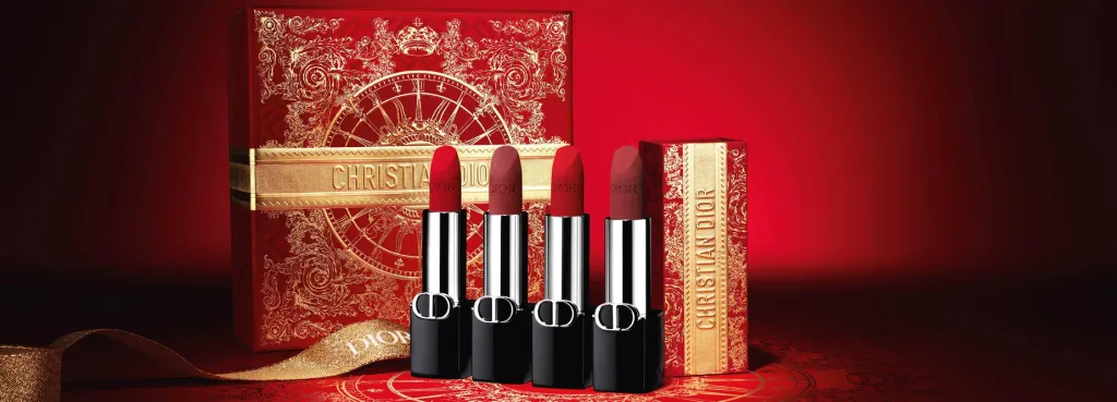 В честь Лунного Нового года 2025 культовая помада Rouge Dior облачена в изысканный и праздничный футляр, украшенный золотым цветочным мотивом, вдохновленным ботаническим и кутюрным дизайном художника Пьетро Руффо. Rouge Dior пропитана цветочным уходом за губами и обеспечивает длительный комфорт и интенсивный цвет. Вуалевый финиш покрывает губы матовым цветом с эффектом блюра, а бархатный финиш обеспечивает интенсивный, сияющий матовый вид, делая губы заметно более гладкими и пухлыми.