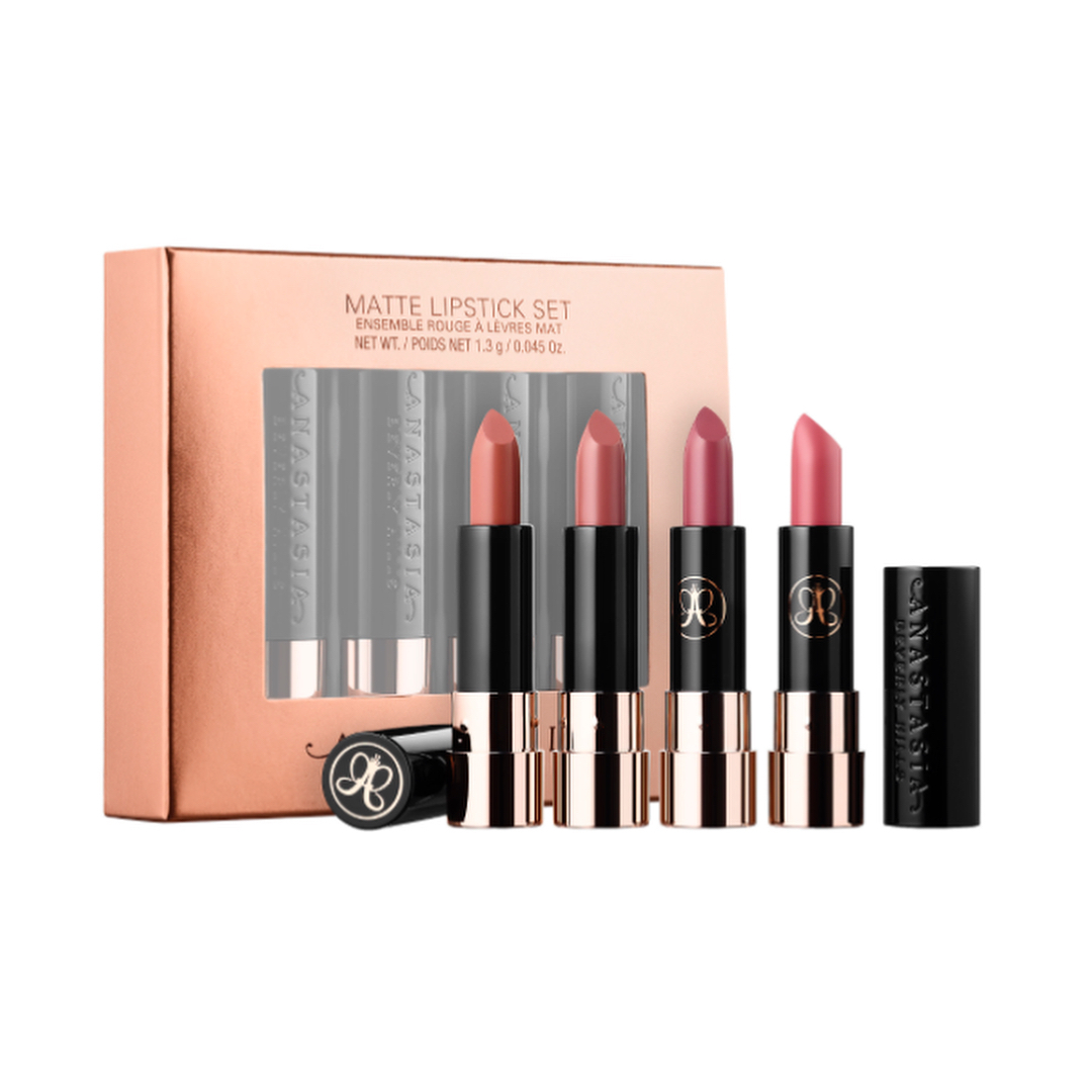 Anastasia Beverly Hills Nude Matte Lipstick Set –набор, который состоит из 4 матовых нюдовых помад, с полным пигментированием.