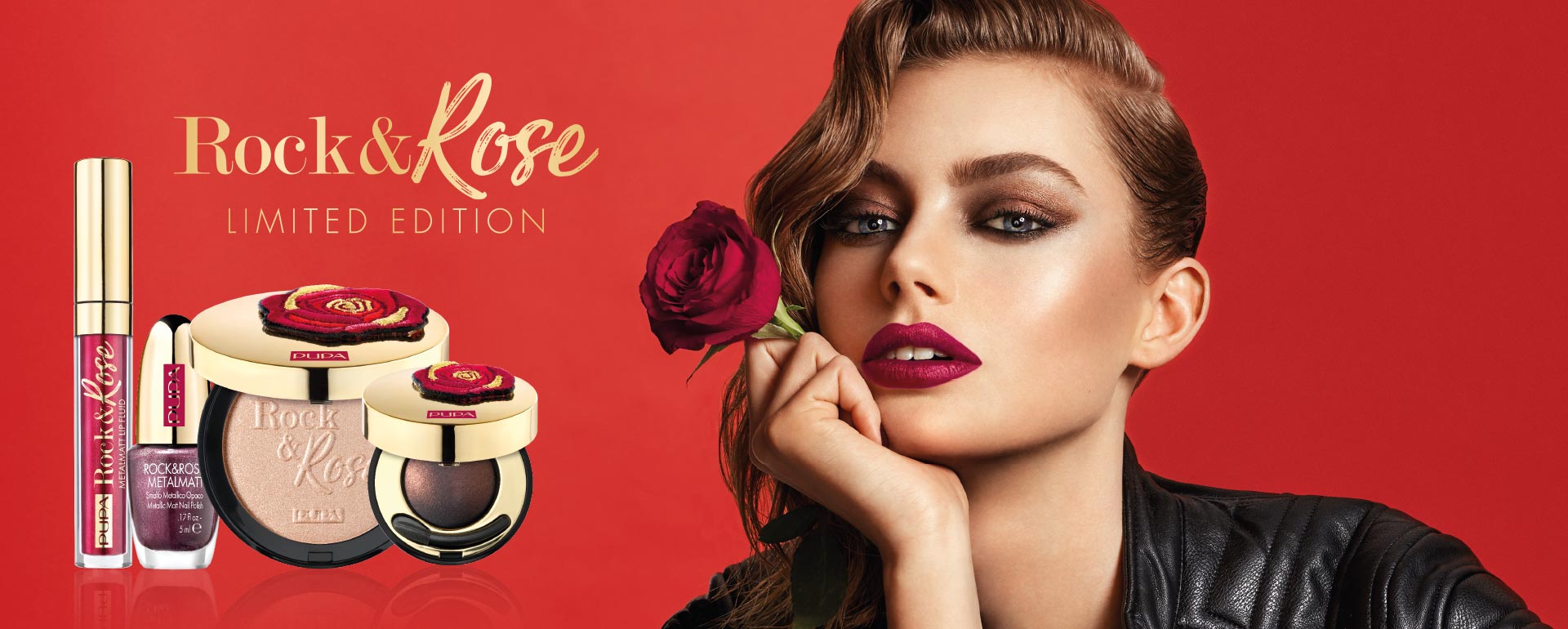 В центре внимания коллекции Rock&Rose от Pupa, оказалась роза. Вокруг нее строится цветовая палитра, и она же изображена на упаковке. В целом стиль объединяет нежность розы и дух рока. Представлено не так много средств, как хотелось бы – тени, хайлайтер, лаки для ногтей и блески для губ. Коллекция подойдет для разных образов, но с уклоном в вечерний макияж.