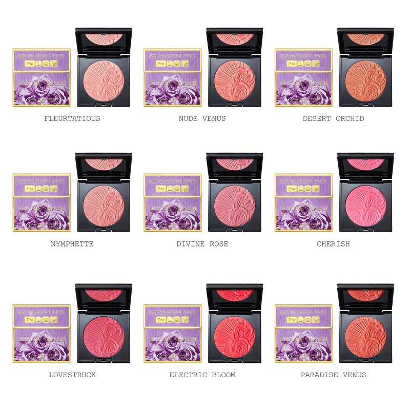 Многослойные. Роскошные. Легендарные. Румяна как у иконы. Самая востребованная новинка Пэт, мгновенно ставшие незаменимыми румяна Divine Blush, создают легкое, долгоиграющее сияние цвета от кутюр в деми-матовом и сатиновом исполнении. Ультратонкие пудровые пигменты обеспечивают чувственно мягкое, великолепно смешивающееся нанесение. Все девять оттенков легко растушевываются от прозрачного к подрывному, от нюдового к дерзкому, обеспечивая чудесное сияние цвета, подходящего для любого тона и типа кожи. Эта новая классика, украшенная сияющими розами и возвышенными лучами солнца, - ответ на вечный вопрос: Кто заставляет вас краснеть?