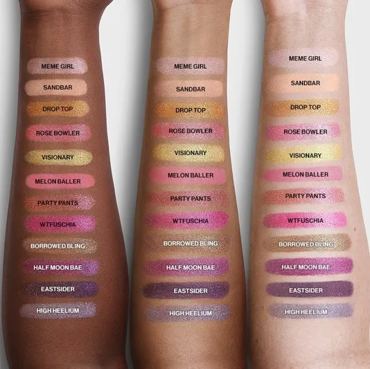 - Полноразмерный прессованный хайлайтер BECCA Shimmering Skin Perfector™ в оттенке Champagne Pop (бестселлер BECCA, мягкое золото с розово-персиковым перламутром): вес нетто 0,24 унц. / 7 g