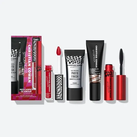 Полный набор, включающий четыре средства для макияжа. Эта лимитированная серия, созданная модельером Кристианом Коуэном, позволяет легко создавать элегантные образы в праздничный сезон и после него. Бестселлер, веганский праймер Original Photo Finish Smooth & Blur Primer помогает макияжу легко наносится, оставаться свежим и держаться дольше. Кремовые тени AlwaysOnShimmerCreamShadow, обогащенные праймером, легко смешиваются и обеспечивают насыщенный мерцанием цвет, который не тускнеет в течение 24 часов. Тушь для ресниц Super Fan придает ресницам эффект веера без размазывания и шелушения. Жидкая помада Always On Liquid Lipstick обеспечивает насыщенный матовый цвет, который держится до восьми часов. Этот набор не тестируется на животных.