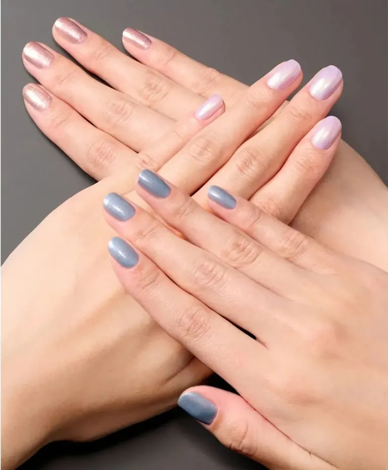Красивый цвет натурального камня и блеск на ногтях. Три цвета, которые сверкают на летнем солнце. Розовый, фиолетовый и голубой добавляют чарующее сияние с искрящимися жемчужинами, вдохновленными фантастическими натуральными камнями.