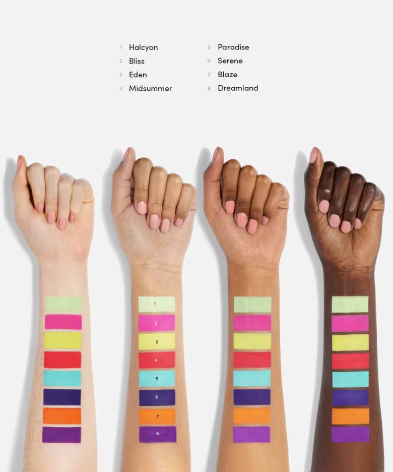 Создайте свою собственную Youtopia с палеткой прессованных пигментов Youtopia от BEAUTY BAY. Палетка из восьми цветов прессованных пигментов наполнена приятными оттенками, которые помогут вам создавать яркие и смелые образы. Благодаря маслянисто-матовой формуле оттенки легко ложатся на кожу и долго держатся на протяжении всей ночи. Чтобы получить максимальный пигмент, нанесите тени на основу для век.