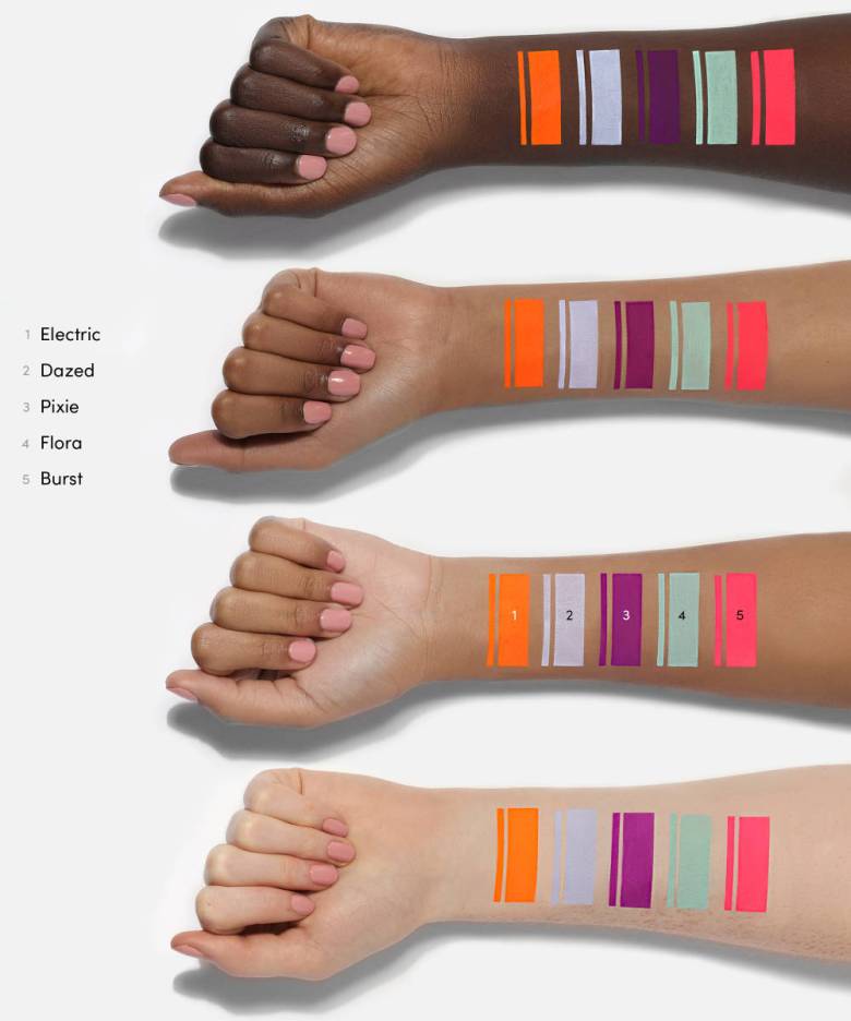 Палетка подводки с пятью оттенками, активируемыми водой.