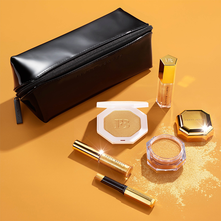 Используйте сияющую пудру Trophy Wife Fairy Bomb Shimmer в мерцающем золотом блеске, чтобы затмить огни этого праздника.FENTY BEAUTY TROPHY WIFE LIFE KIT, $69.00 (лимитированный выпуск) - подарочный набор для создания макияжа;