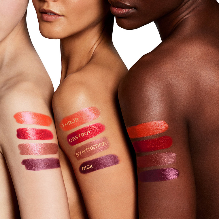 Ультра-скользящая губная помада из блесток с металлическим эффектом придает губам взрывной цвет.