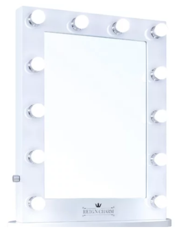 Это зеркало сразу преобразит Ваш туалетный столик. Оно доступно в черном и белом цвете, обладает 12 лампочками и розетками.