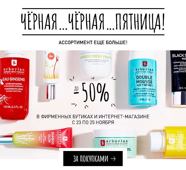 Erborian- скидки до -50% на выборочный ассортимент.