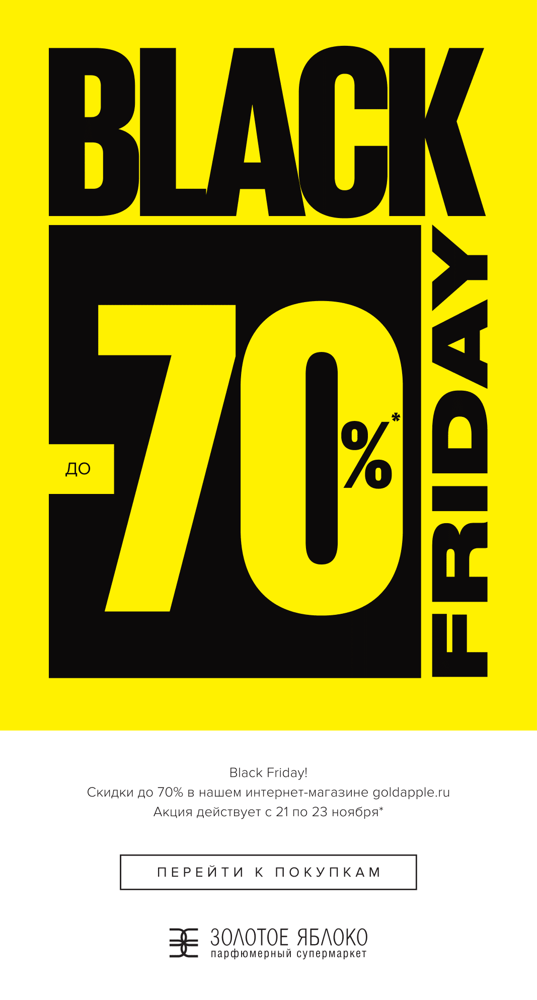 Действие акции до 30.11.2018 23:59 по моск. времени.ЗОЛОТОЕ ЯБЛОКО- скидки до -70% на выборочный ассортимент.Действие акции до 23.11.2018 23:59 по моск.времени.