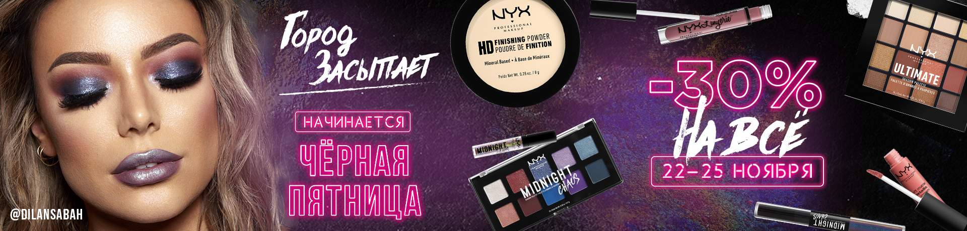 NYX Cosmetics- скидки до -30% на весь ассортимент.