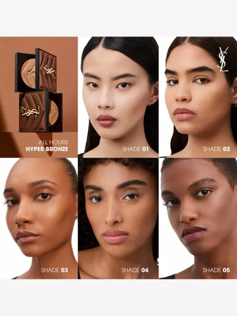 YSL Beauty выпустила новую пудру All Hours Hyper Bronze Powder, призванную выравнивать тон кожи, размывая несовершенства и минимизируя поры. Пудра доступна уже сейчас в 5 оттенках по цене $65 за штуку.
