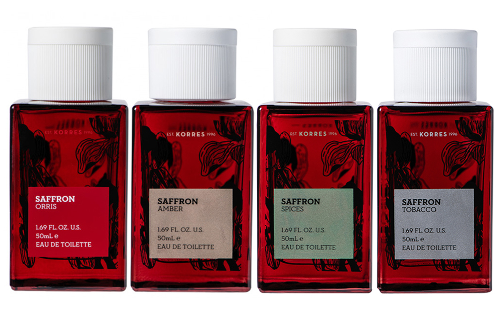 Коллекция Saffron от Korres состоит из двух ароматов для нее и двух ароматов для него.