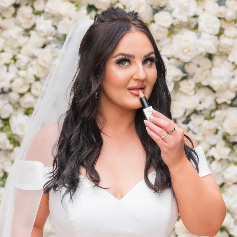 Лимитированный дуэт для губ с помадой O FACE Satin Lipstick эксклюзивного оттенка и новым карандашом для губ Cream Glide Lip Liner, созданный бьюти-блогером Микайлой Ногейра (@mikaylanogueira) в честь дня ее свадьбы.