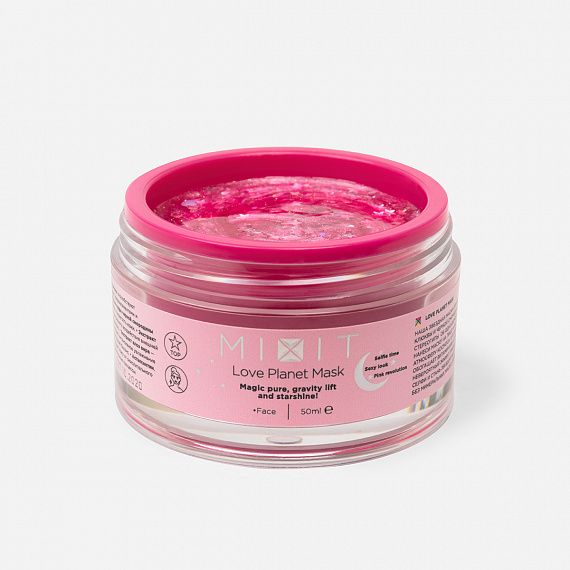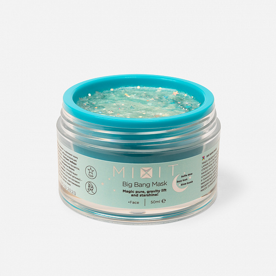 Mixit выпустили два разных виде масок-пленок: Big Bang Mask и Love Planet Mask. Обе маски будут блестеть и помогут покорить социальные сети. Первая, в бирюзовом цвете подойдет всем, кто хочет привести кожу в тонус и вернуть упругость. В составе представлены тархун, мелисса и имбирь, которые возвращают кожу к жизни. В результате – естественная, свежая и сияющая кожа.
