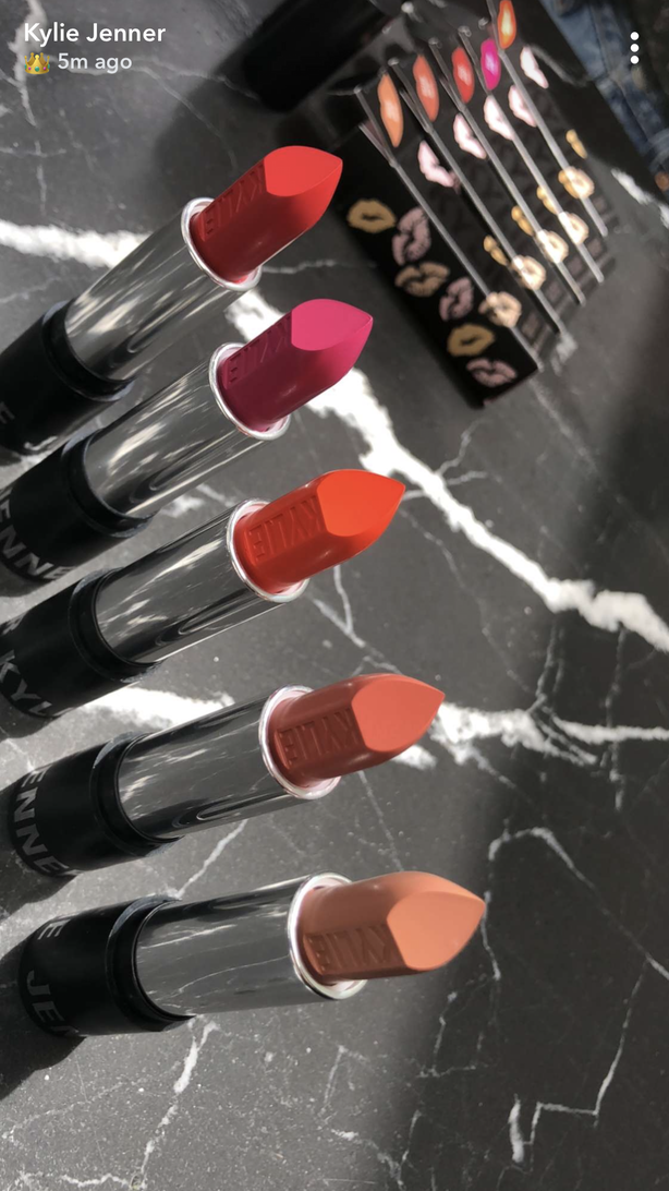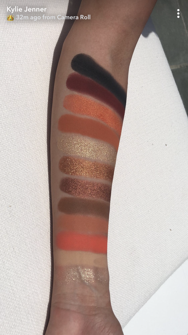 Среди новинок Kylie Cosmetics вы встретите: палитру теней, помады и блески для губ. Сразу бросается в глаза сочный оранжевый. Конечно, есть риск добавлять его в коллекцию –цвет весьма сложный. Но на фоне прочего, смотрится достаточно необычно.