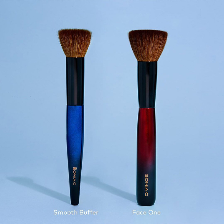 «Smooth Buffer - это кисть Face One с меньшим диаметром наконечника и поверхности. Она предлагает ту же функциональность, что и Face One, с такой же мягкостью и подвижностью щетины. Плотность и гибкость делают этот небольшой инструмент универсальным для повседневного использования». - Sonia G.