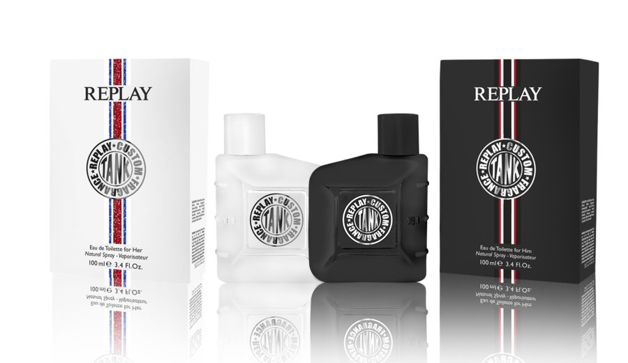 В Италии, доступна с середины января 2019 года, и в других странах в марте 2019 года новая коллекция Replay #Tank duo представляет современную коллекцию, выпущенную в 2017 году. Компания Mavive, как владелец лицензии на Replay Perfumes, запустила первый #Tank For Him о (#Tank for Her и #Tank for Him) два года назад, чтобы продолжить с #Tank Plate for Her и #Tank Plate for Him, в 2018 году. Коллекция расширяется до новых наследников #Tank Custom for Her и #Tank Custom for Him, выпускаемый в бело-черном флаконе того же цвета, что и предыдущая версия Tank.
