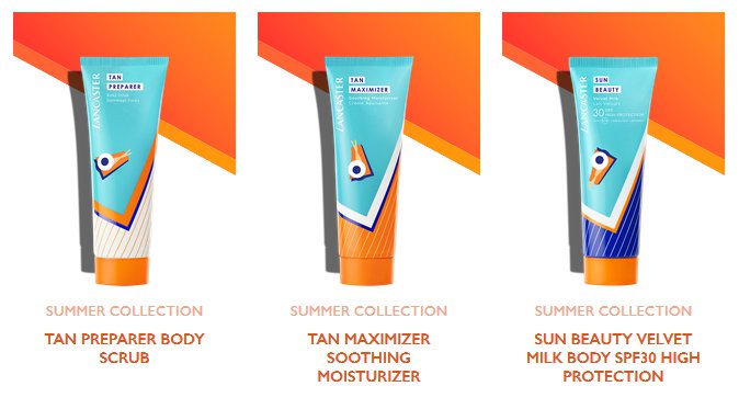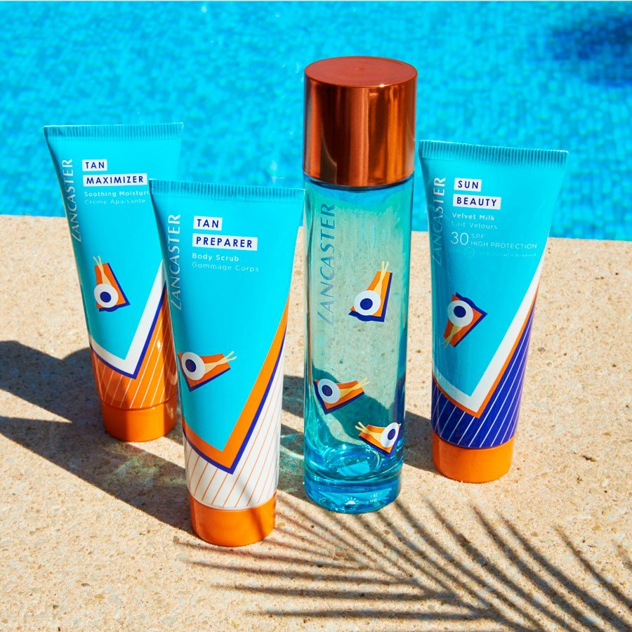 Французский аромат LANCASTER Riviera доступен в флаконах по 100 мл туалетной воды, а сопутствующая коллекция для тела состоит из скраба для тела Tan Preparer 75 мл, успокаивающего увлажняющего средства Tan Maximizer 75 мл и молочка для тела после загара Sun Beauty Velvet Milk SPF 30 объемом 75 мл.