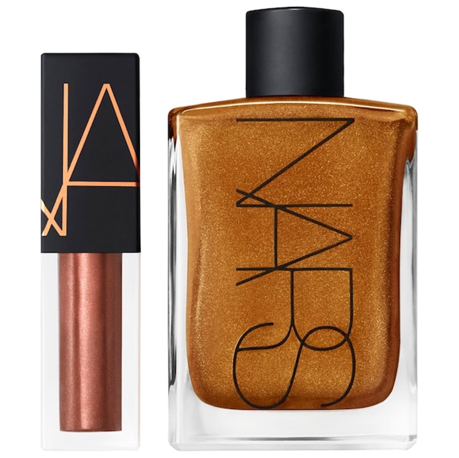 Nars Monoï Body Glow and Oil-Infused Lip Tint travel-size - набор тинт для губ и масло для тела в travel-формате;Почувствуйте сущность Таити с этим насыщенным, увлажняющим, питательным и роскошным дуэтом для губ и тела. Monoï Body Glow обеспечивает насыщенное шоколадное мерцание с богатым бронзовым блеском. Тинт для губ на основе масел придает коже розовато-лиловый блеск, увлажняет и защищает губы.Состав: