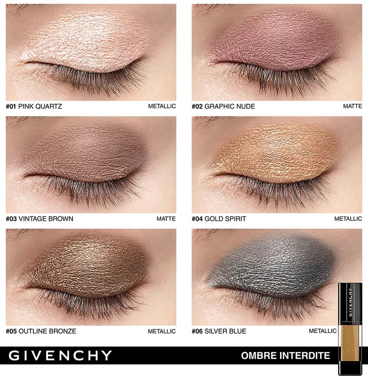 Эти жидкие тени для век меняют свою консистенцию на кремовую при контакте с кожей. Их мощный и яркий цвет держится 24 часа без повторного нанесения. Эти тени "одевают" глаза в ультра сверкающие оттенки, его инновационная формула трансформации легко наносится на веко и мгновенно с ним сливается, обеспечивая непередаваемый результат.Givenchy Ombre Interdite Eyeshadow выпускается в 6 оттенках, включая 4 металлических и 2 матовых оттенка.Оттенки: