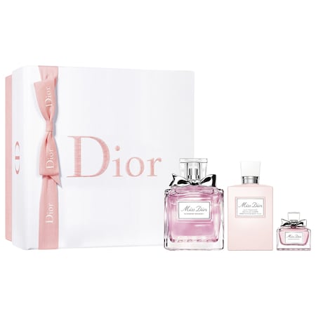 Новый набор от Dior, состоящий из трех флакончиков туалетной воды, специально предназначен для лета. Испытайте ласку Свежей розы "одетой" в цветы пиона. Эта туалетная вода раскрывается с лучезарным калабрийским бергамотом, нежным сердцем пиона и дамасской розой. Цветочная весенняя подпись, идеально подходящая для кокетливой, неотразимой и очаровательной Miss Dior. Blooming Bouquet - это композиция, сделанная как платье, расшитое тысячью цветов. Это отдает дань легендарной любви Кристиана Диора к цветам. Аромат усиливается за счет тепла вашего тела и остается в течении 12 часов. Продукт не следует втирать к кожу, потому что это "разрушит" его и он быстро выветрится.