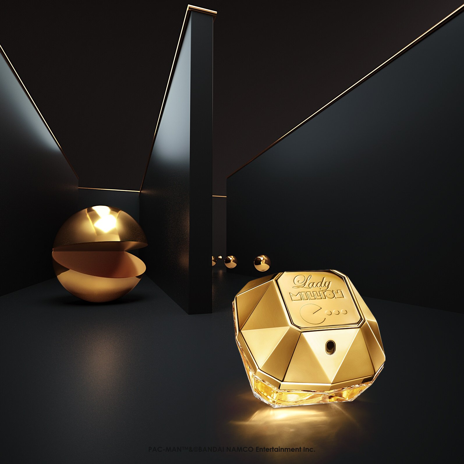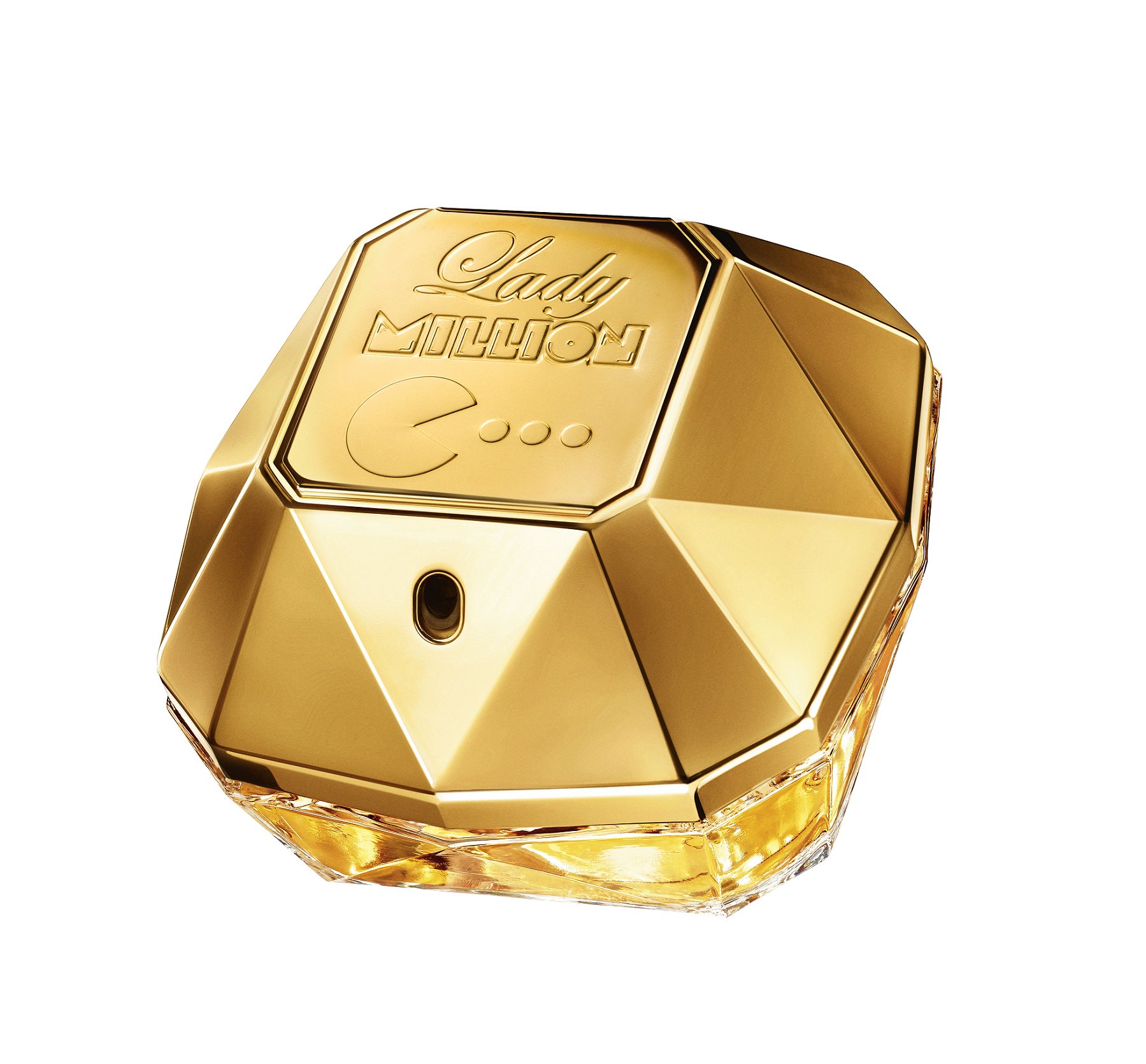 Paco Rabanne Lady MILLION, 2010Дамское издание последовало за мужской версией, оно состоит из белых цветов, меда и пачули Анны Флипо, Беатрис Пике и Доминика Ропиона из IFF.Новые лимитированные издания Lady Million Pac-Man (80 мл Eau de Parfum) и 4 Million Pac-Man (100 мл Eau de Toilette) поступят в продажу с 6 мая 2019 года.