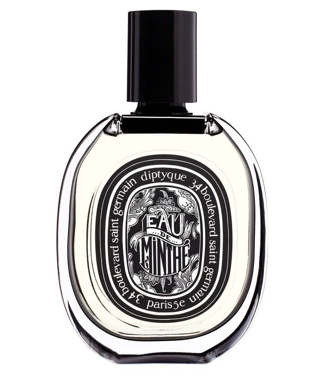 Благодаря запаху мяты, Diptyque создает современную версию обонятельной категории fougere. Diptyque Eau de Minthe источает зеленый ароматический аромат мяты из Орегона, США, подчеркнутый мускатным орехом. Пачули добавляет глубину в композицию. Вместо лаванды, которая характерна для парфюмерных духов, Diptyque использует ароматы розы и герани.