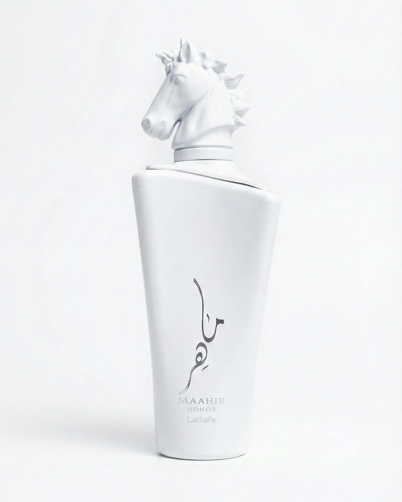 Maahir Honor — унисекс-парфюм в формате Eau de Parfum, выпущенный во впечатляющем белом флаконе с изображением белого жеребца, символизирующего природную силу и лёгкую элегантность.