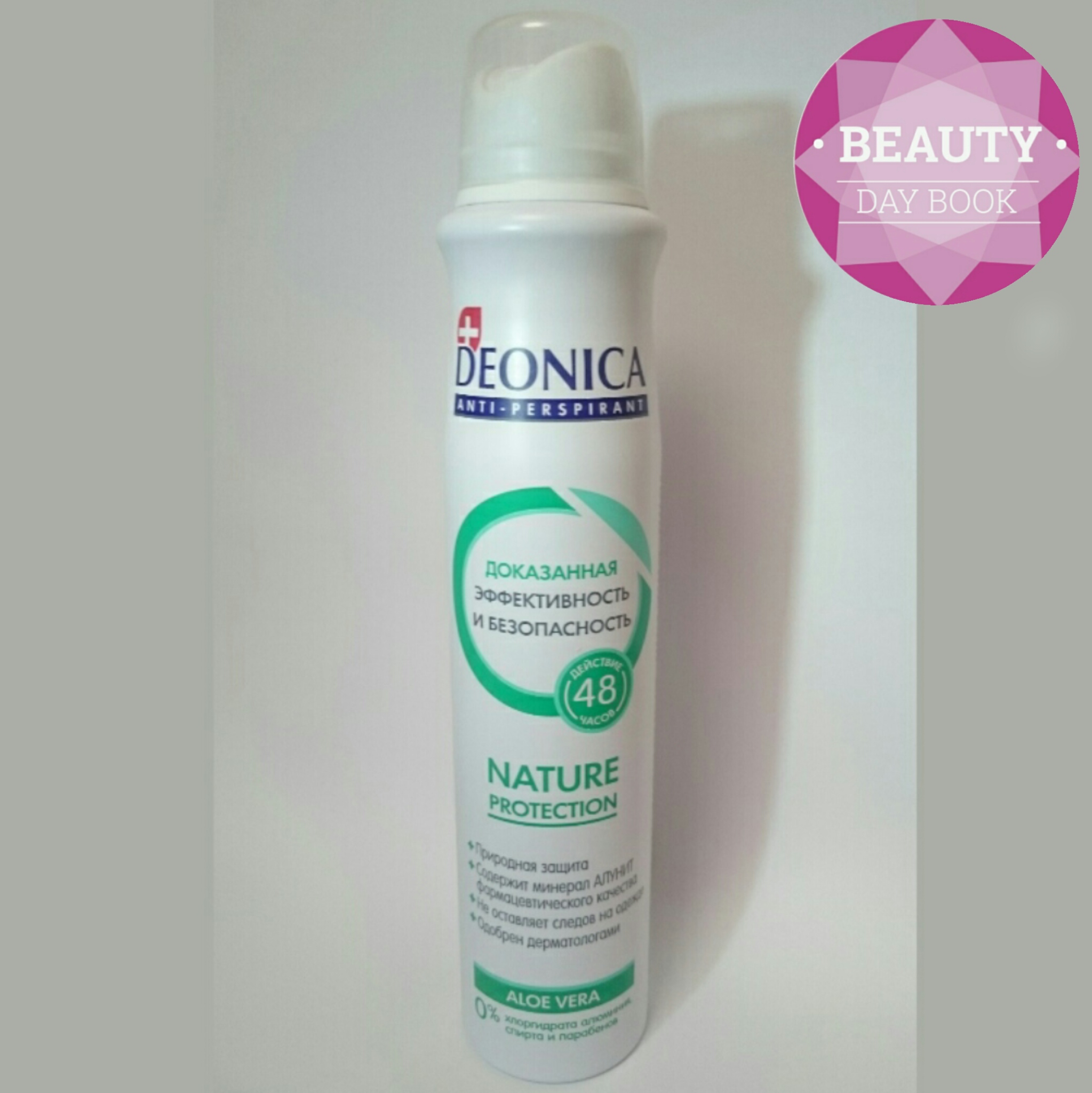 Сегодня мы хотим поделиться опытом применения антиперспиранта Deonica Nature Protection c Aloe Vera. Средство изготовлено в виде аэрозольного баллончика объемом 200мл, которого хватает надолго, так как расход очень умеренный. Использование методом распыления очень удобно.Утреннего применения достаточно на целый день. На средстве указано "действие 48 часов", но это нереально. Мы не встречали ни одного средства с двухсуточным действием по факту. Да и не надо - вечерний душ никто не отменял. Зато с этим средством гарантировано отсутствие пота и запаха в течении всего дня. Уникальность этого продукта в природном минерале Алунит фармацевтического качества, который не закупоривает потовые железы и не впитывается, а значит, не накапливается организмом. И наоборот, в отсутствии спирта, парабенов, а главное, хлоргидрата алюминия, который может вызвать раздражение и даже аллергию. А гипоаллергенность минерала Алунит гарантирована природой и одобрением дерматологов, что указано на упаковке.Рецептура средства разработана аж в самой Швейцарии при том, что данный антиперспирант не является дорогим. Средство не оставляет следов на одежде и имеет приятный легкий аромат, не перебивающий основного парфюма. Оно действительно работает и, к тому же, безопасно.